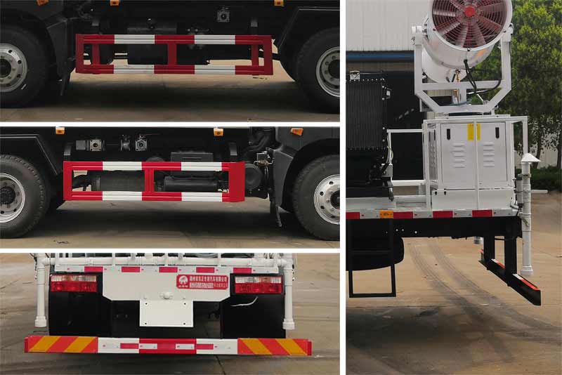 | 側(cè)后防護(hù)采用Q235材質(zhì)焊接連接,后部防護(hù)斷面尺寸(mm):50×120,后部防護(hù)離地高度(mm):480.ABS系統(tǒng)生產(chǎn)廠家,型號(hào) :焦作博瑞克控制技術(shù)有限公司,J ABS.該車用途為抑塵降霾,主要裝置為罐體及噴霧裝置.選用3950mm軸距. | |||